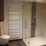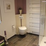 Tolles Bad in Naturtönen mit Holzoptik Boden